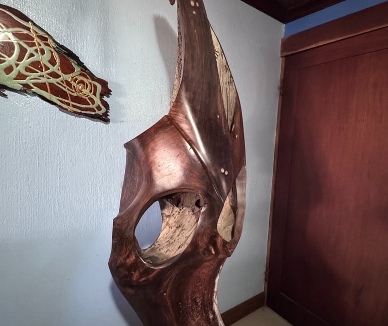Soy un escultor autodidacta costarricense con más de 20 años de trayectoria, una carrera que no nació en las aulas, sino que se forjó desde el oficio, la experiencia directa y un vínculo profundo con la madera que me acompaña desde siempre. Mi camino empezó apenas a los 11 años, cuando descubrí una habilidad natural para el trabajo manual; desde entonces, me inicié en la carpintería y la albañilería, explorando la pintura y diversos oficios vinculados a la construcción. Con el paso del tiempo, ese aprendizaje práctico se transformó en la base sólida que hoy me permite dominar con profundidad los materiales y los procesos artesanales.